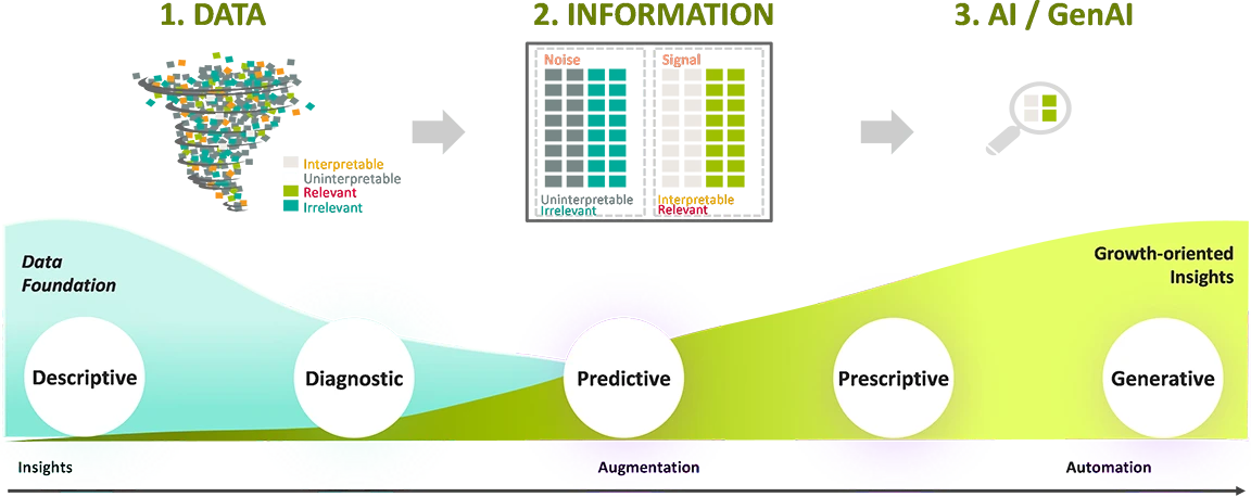But there also a realization within the C-suite that this technology needs to be harnessed methodically and yet with agility. Literally EVERY C-Suite meeting that I partake in, I’m asked for a point of view on what they should be doing to be ready for AI and GenAI. Amidst all the hype and noise on this topic, if I were to tune into the signal, there are three areas that are important for every company to avail of their data/AI investments to create a true competitive advantage: